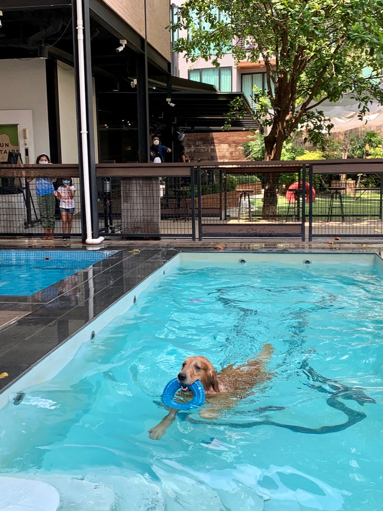 I enjoys long walks, playing fetch, and swimming in the pool.